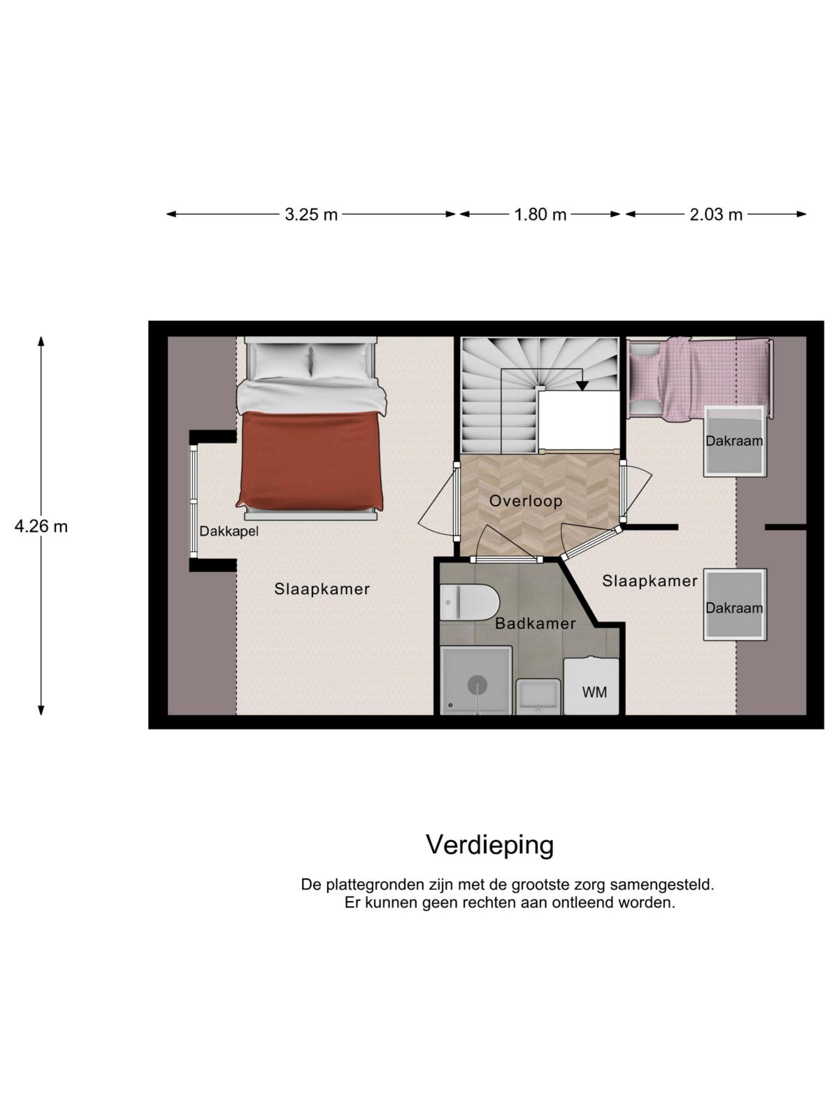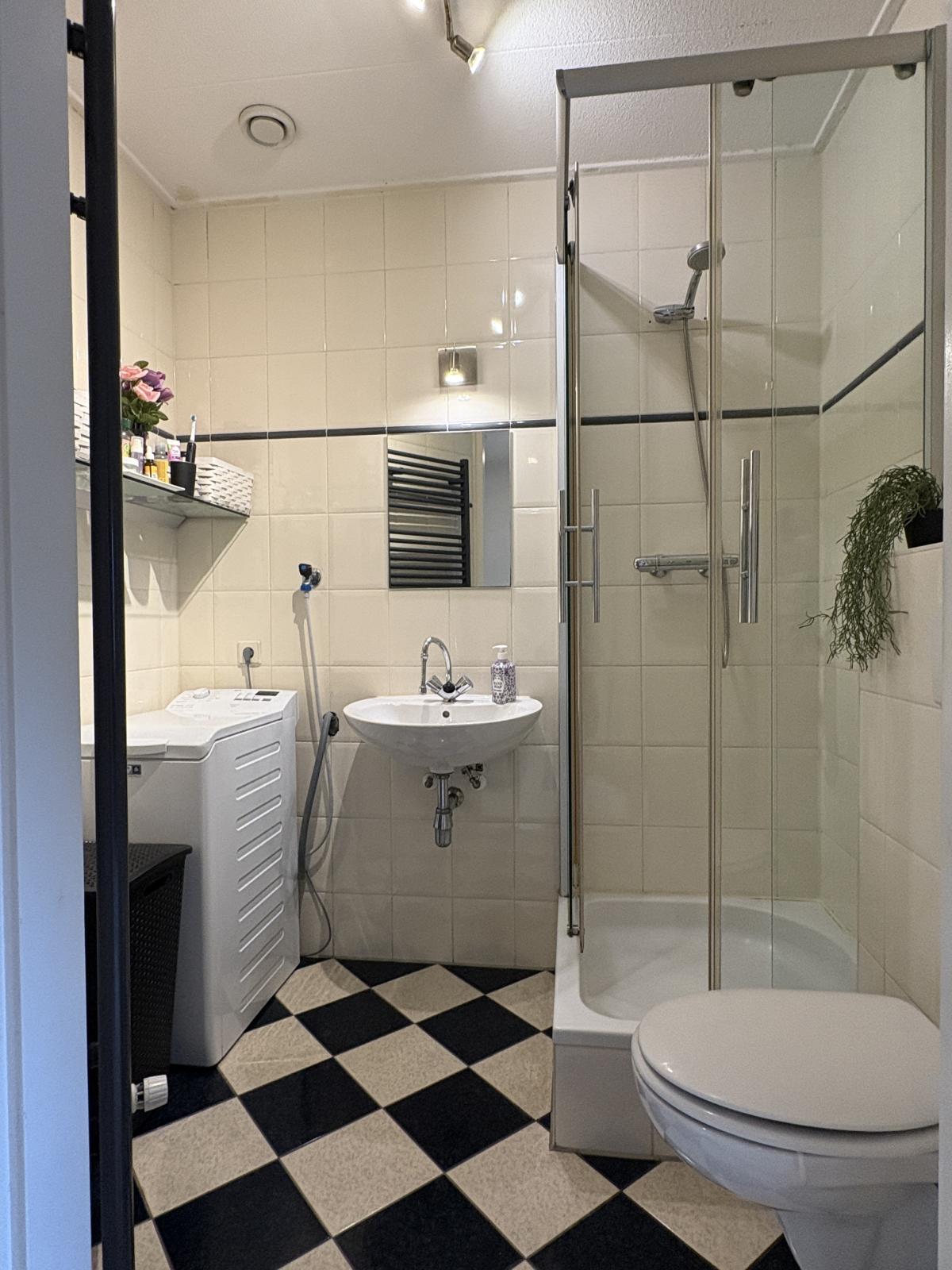 Via de trap in de woonkamer bereik je de bovenverdieping, met twee slaapkamers en een praktische badkamer voorzien van douche, toilet en wasmachineaansluiting. Daarnaast is er via een vlizotrap toegang toe de zolder, ideaal als extra opbergruimte.