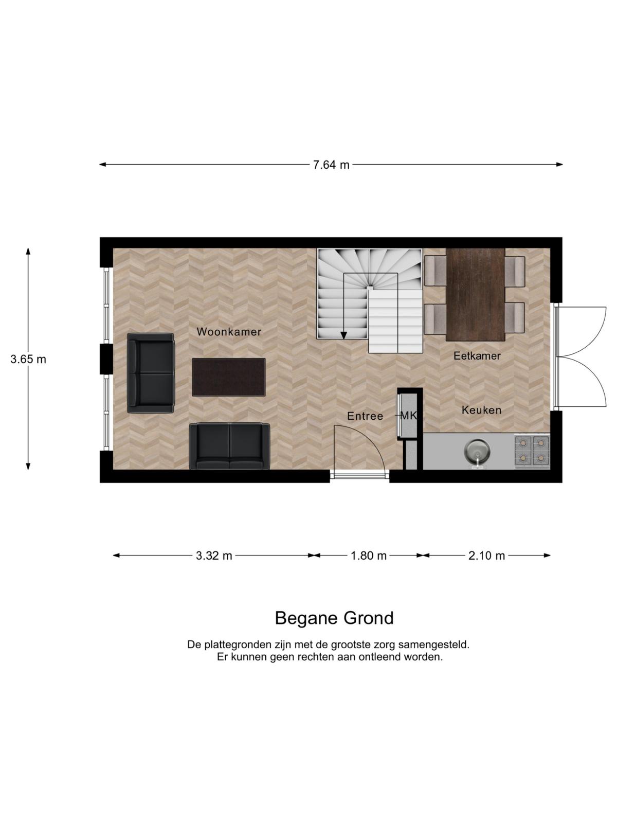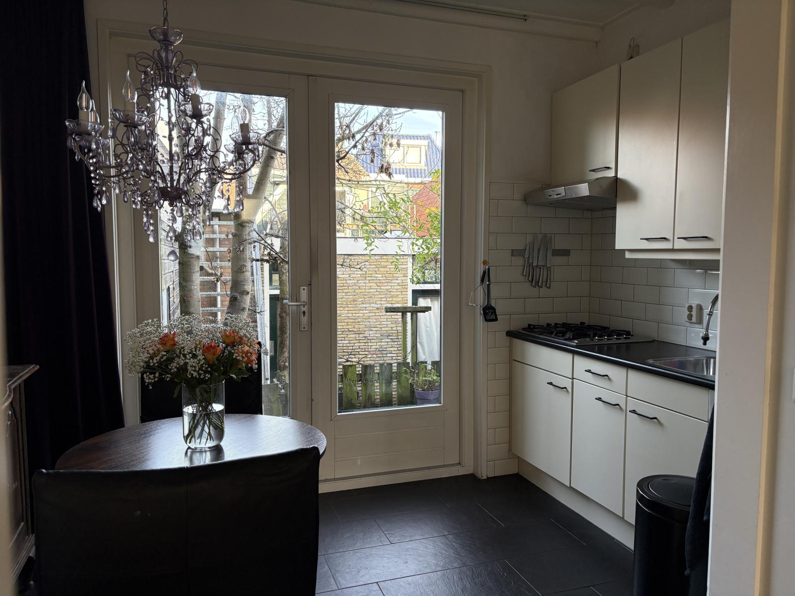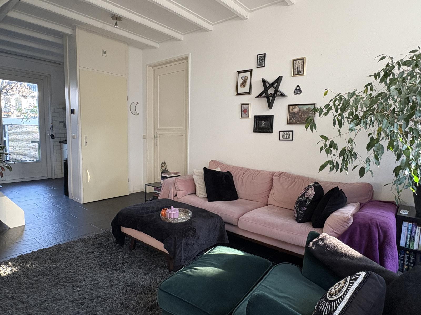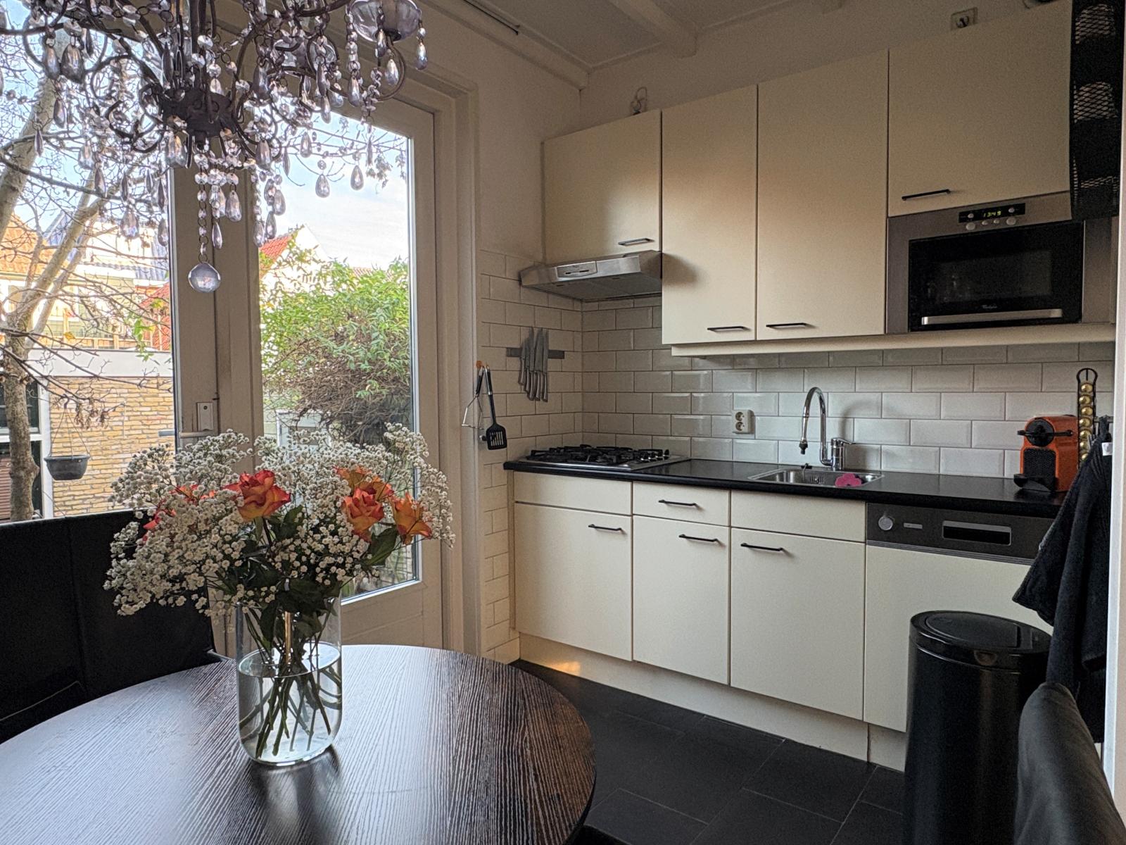 Op de begane grond bevindt zich aan de straatzijde de gezellige woonkamer. Aan de achterzijde ligt de keuken, waar een knusse eethoek is gecreëerd en waar de openslaande deuren toegang geven tot het achterplaatsje - een heerlijke plek om 's ochtends te genieten van een kop koffie of thee in alle rust.