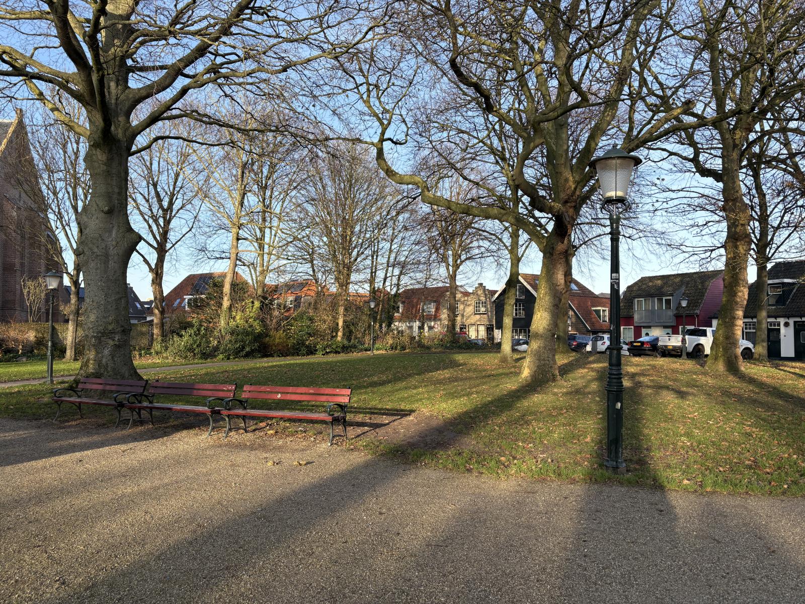 's Middag kun je heerlijk van de zon genieten aan de voorkant van de woning, of zoek je een plekje in het park direct tegenover.