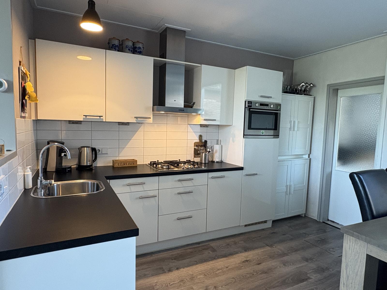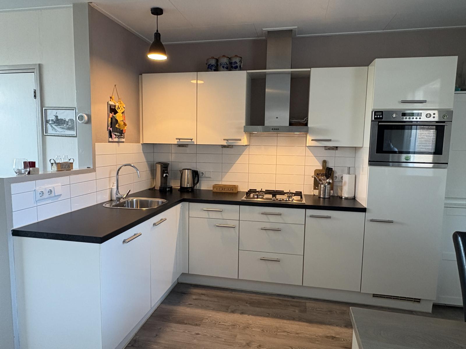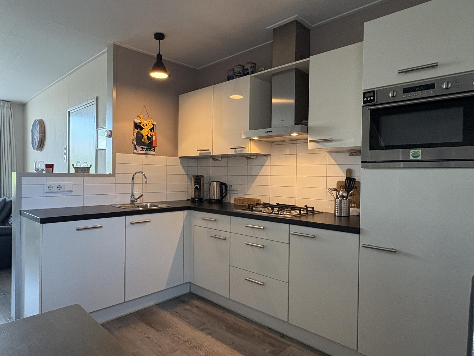 * Complete keuken met 4-pits gasplaat, vaatwasser, koelkast en combi-oven.
