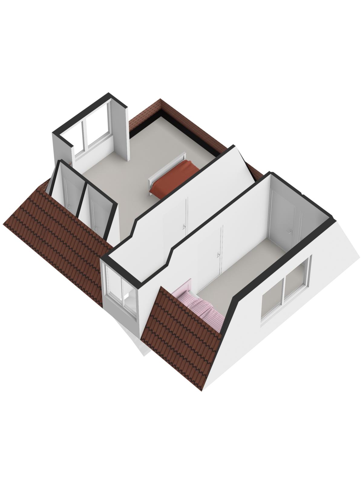 Op de verdieping bevinden zich twee slaapkamers, beide voorzien van vaste kasten.
